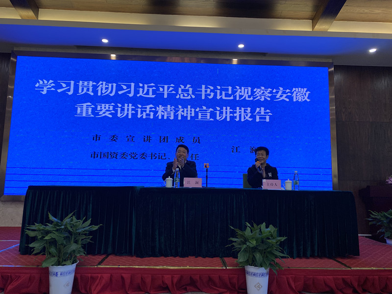 活動第二部分,公司邀請了市委宣講團(tuán)成員、市國資委黨委書記、主任江瀾同志給公司全體員工作了《學(xué)習(xí)貫徹習(xí)近平總書記視察安徽重要講話精神》的宣講。江主任對習(xí)總書記視察安徽重要講話精神作了深刻的闡述,并結(jié)合實(shí)際對我公司為蕪湖市經(jīng)濟(jì)、產(chǎn)業(yè)發(fā)展所作貢獻(xiàn)、取得成績給予高度認(rèn)可,進(jìn)一步激發(fā)了公司全體員工干事創(chuàng)業(yè)的激情。