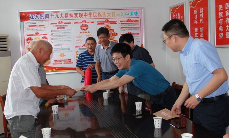 公司黨委班子和老同志們首先進行了親切交談,并仔細詢問了他們的身體狀況,生活中遇到的困難以及目前急需解決的問題,并期望老黨員發(fā)揮作用,為村集體決策發(fā)展建言獻策。隨后向每位老黨員送上了慰問金。老黨員、困難黨員對黨組織和領導的關懷表示感謝。
