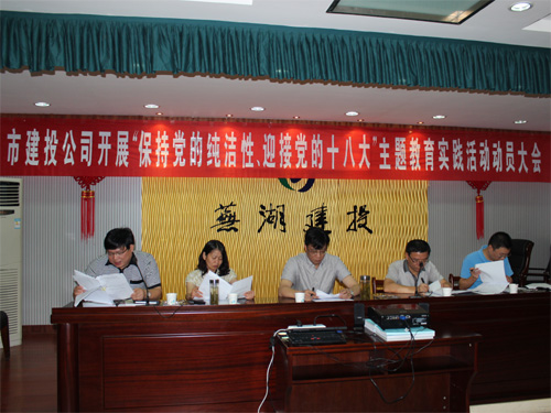 根據(jù)市委統(tǒng)一部署,公司于7月5日召開(kāi)“保持黨的純潔性、迎接黨的十八大”主題教育實(shí)踐活動(dòng)動(dòng)員大會(huì),公司全體黨員參加了會(huì)議。會(huì)議由公司副總經(jīng)理朱毅主持,公司紀(jì)檢組長(zhǎng)汪學(xué)德向全體黨員傳達(dá)了市委相關(guān)文件精神,公司副總經(jīng)理方曉向全體黨員通報(bào)了公司主題教育實(shí)踐活動(dòng)實(shí)施方案,公司副總經(jīng)理湯高繼帶領(lǐng)全體黨員學(xué)習(xí)了胡錦濤總書(shū)記在慶祝建黨九十周年上的講話、在十七屆中央紀(jì)委第七次全會(huì)上的講話及張寶順在省第九次黨代會(huì)上的工作報(bào)告等資料。全體黨員觀看了專(zhuān)題電教片《永葆黨的純潔性》等。
