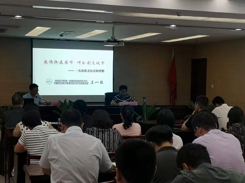 6月18日,全國(guó)優(yōu)秀共產(chǎn)黨員、全國(guó)抗擊新冠疫情先進(jìn)個(gè)人、皖南醫(yī)學(xué)院第一附屬醫(yī)院重癥醫(yī)學(xué)科副主任、安徽省第一批支援湖北醫(yī)療隊(duì)醫(yī)療總負(fù)責(zé)人,危重救治組黨支部書(shū)記、組長(zhǎng)姜小敢來(lái)公司作了題為“感悟抗疫精神、體會(huì)制度優(yōu)勢(shì)——一名抗疫親歷者的理解”的黨史學(xué)習(xí)教育專題宣講報(bào)告。市建投公司全體員工,子公司黨支部全體支部委員參加了此次專題宣講報(bào)告會(huì)。